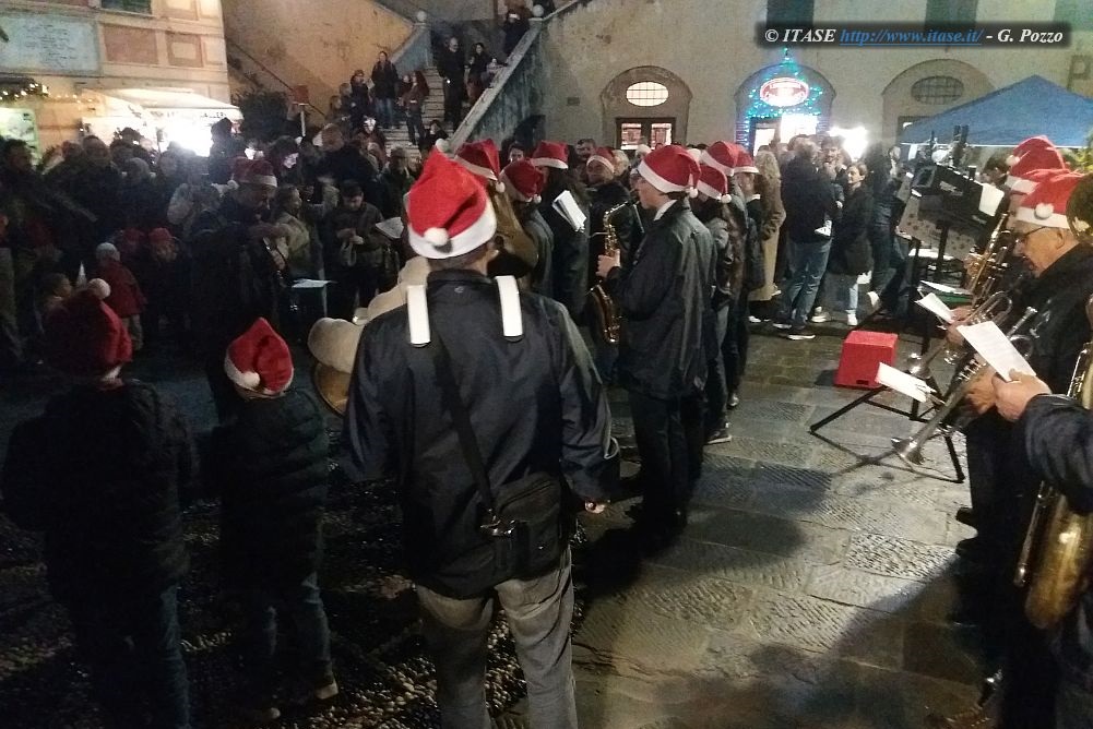 Il sole era calato oltre l'orizzonte dopo l'ennesimo stupendo tramonto per questa stupenda giornata di sole, la banda arrivata si posizionava al fianco dell'albero e incominciava a suonare musiche natalizie.