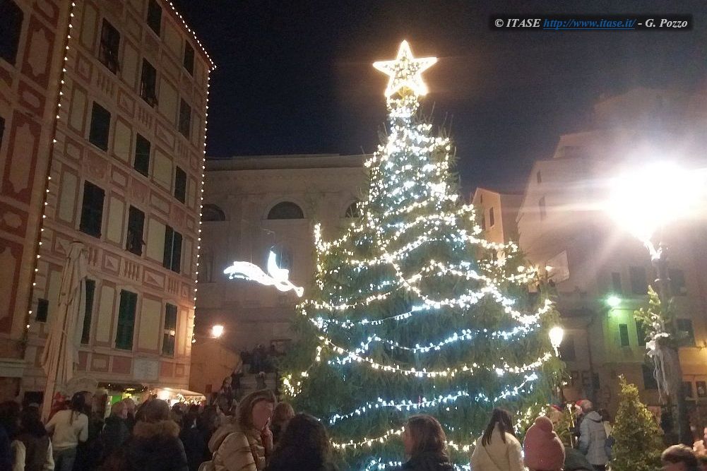 Oggi a Camogli Piazza Colombo si affollava di persone giunte per assistere all'accensione dell'albero di Natale.
