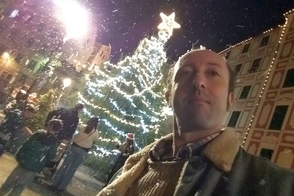 Non molto dopo l'accensione dell'albero con effetto neve molto suggestivo e realista, anche se in questa parte di Liguria la temperatura per il momento scongiura di sicuro una reale nevicata.
