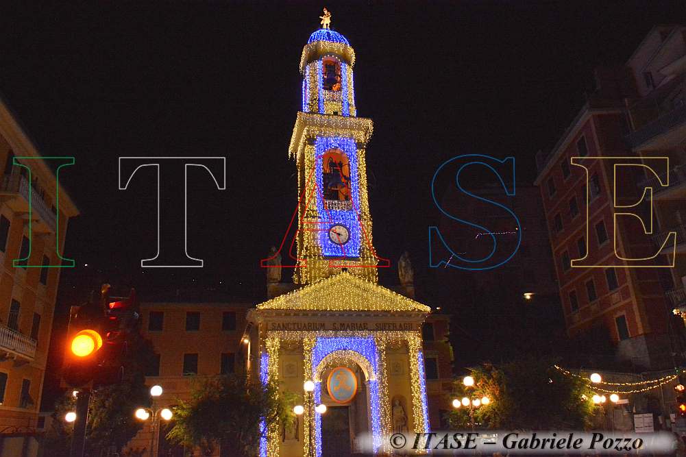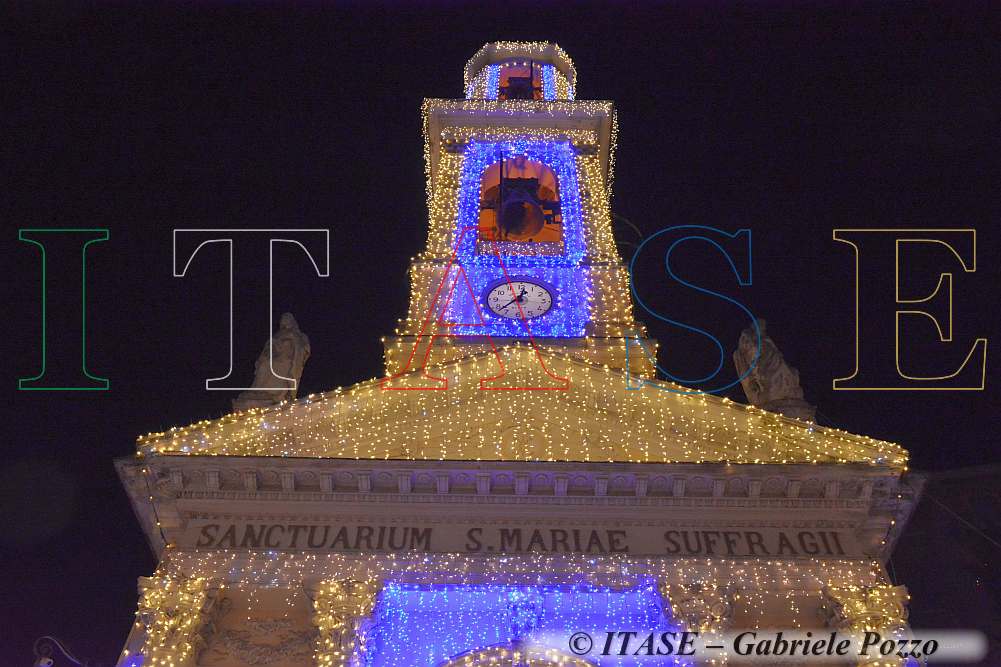 Una fotografia del Santuario illuminato a festa, la bella illuminazione ad opera della ditta Verdina.