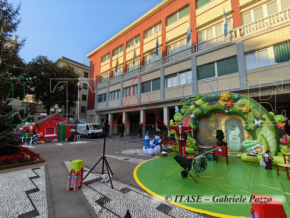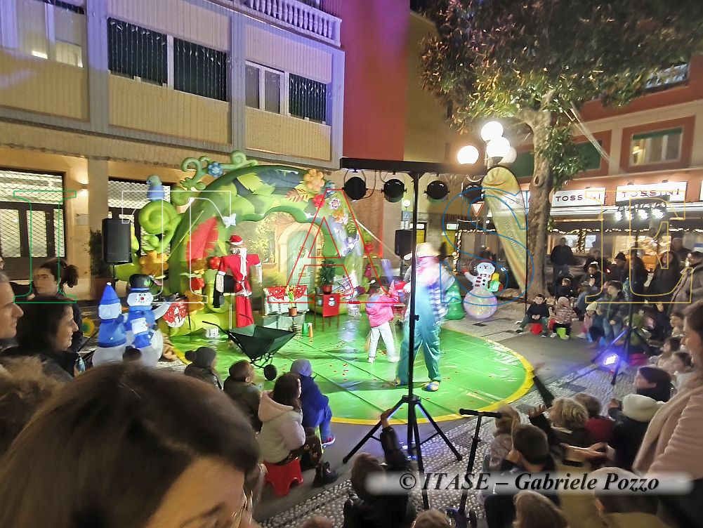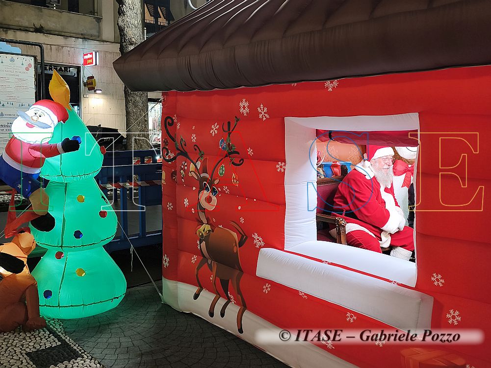 Oggi poi la casetta gonfiabile di Babbo Natale accoglieva i bambini passati a salutarlo ... ed a chiedergli un regalino. Sempre davanti al municipio era stato allestito un palco bello verde che presto avrebbe attratto numerose persone con i loro pargoli.